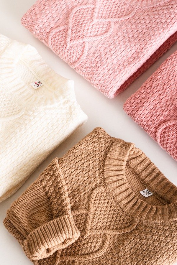 Sweater de cuello redondo con detalle de corazon